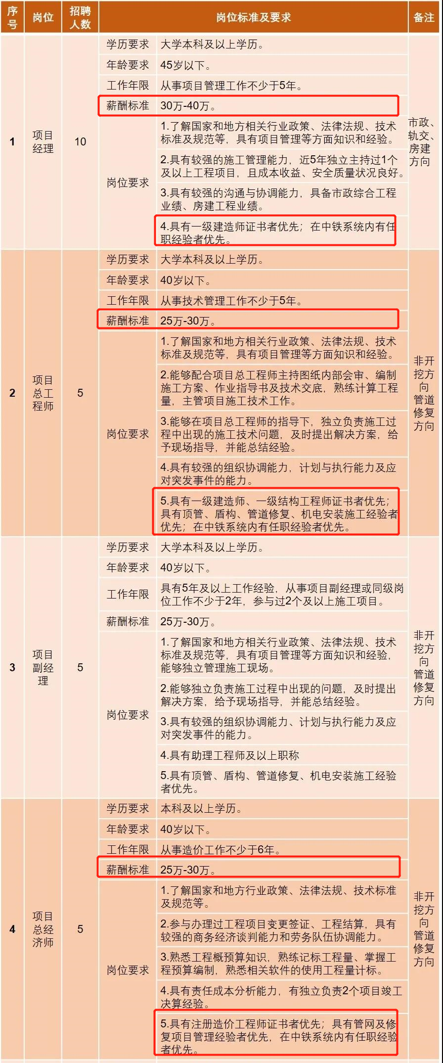 具有一级建造师市政公用工程、机电安装工程、港口与航道工程、水利水电工程、建筑工程等专业首次注册在公司的员工,一次性奖励5-10万元,并每月发放证书津贴2500-4000元。